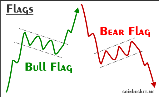 Forms after a sharp drop (the “pole”) with a tight upward-sloping consolidation (the “flag”) on drying volume—like bears reloading before the next leg lower. Rocks for momentum.
