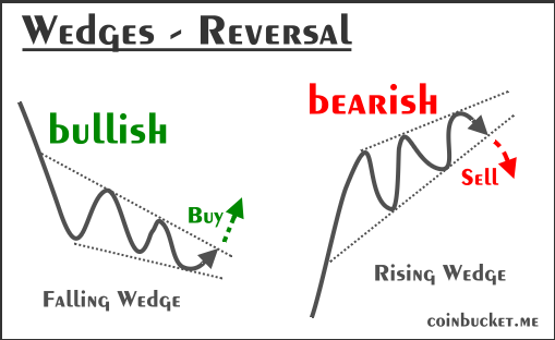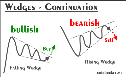 Wedges are a variation of flags. Some hint at a continuation of the trend, up or down.